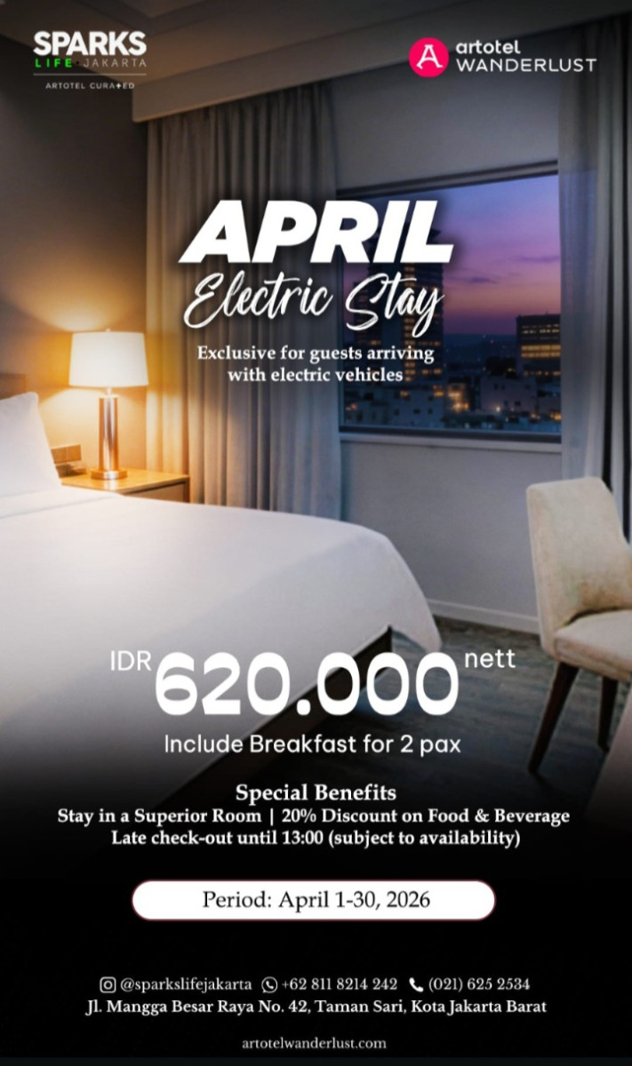 Dalam rangka mendukung gaya hidup ramah 1lingkungan dan mobilitas berkelanjutan, SPARKS Life Jakarta menghadirkan promo spesial bertajuk “April Electric Stay”.