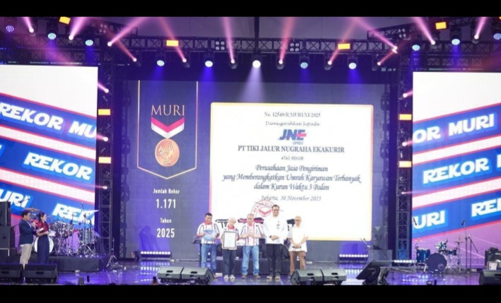 Dalam momentum bahagia ini, JNE juga mendapatkan pengakuan istimewa. JNE berhasil mencatatkan rekor di Museum Rekor Indonesia (MURI) sebagai perusahaan ekspedisi tajuk rekor Perusahaan Jasa Pengiriman yang Memberangkatkan Umrah Karyawan Terbanyak dalam Kurun Waktu 3 Bulan. Sebanyak 1.171 karyawan/ti diberangkatkan dalam kurun waktu tiga bulan dari September hingga November 2025. Pemberangkatan Umrah karyawan ini merupakan kegiatan rutin tahunan JNE sebagai bentuk apresiasi perusahaan yang tinggi terhadap kinerja karyawan yang telah mencapai massa kerja 12 tahun.