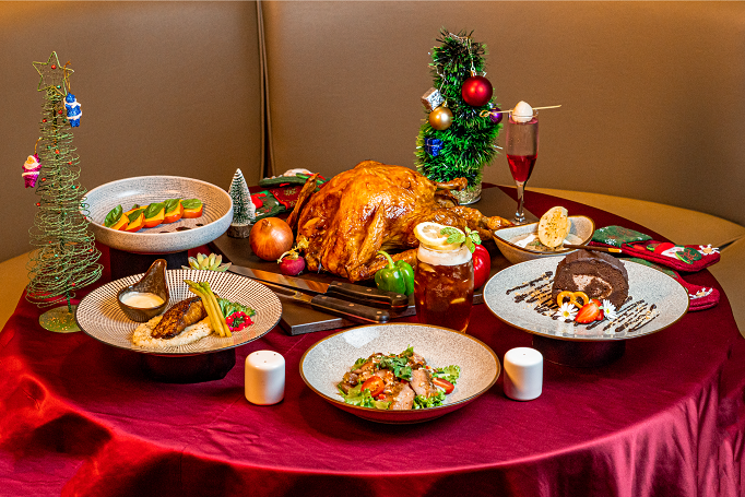 Sementara itu, Christmas Lunch Set Menu yang tersedia pada 25 Desember 2025 juga ditawarkan dengan harga Rp250.000++ per orang. Pengalaman makan siang ini dimulai dengan pilihan Thai Beef Salad atau Caprese Salad, kemudian dilanjutkan dengan Wild Mushroom Soup yang hangat dan creamy. Untuk hidangan utama, para tamu dapat memilih Traditional Roast Turkey atau Honey Glazed Barramundi Fillet, kemudian ditutup dengan dessert Chocolate Yule Log. Hidangan ini dipadukan dengan minuman Christmas Punch atau Iced Lemon Tea yang menyegarkan untuk melengkapi suasana Natal di siang hari.